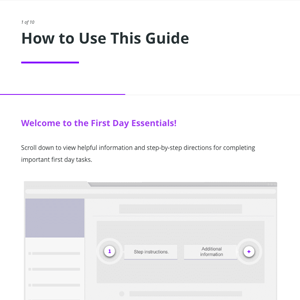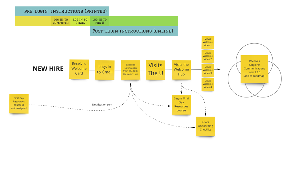 Online guide and custom designed card with login instructions inside are designed for the needs of the new hires at their first day.