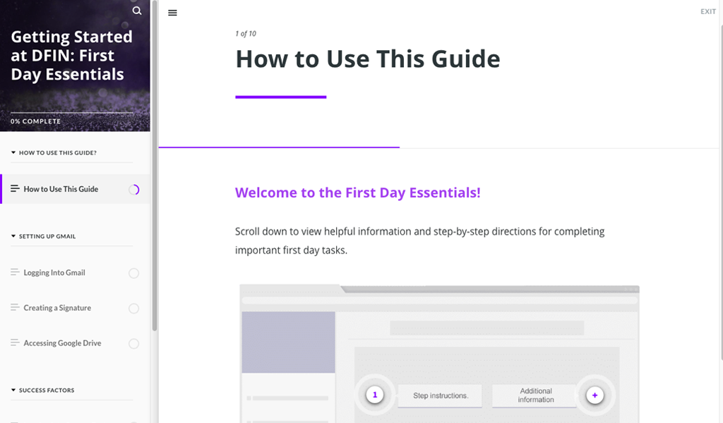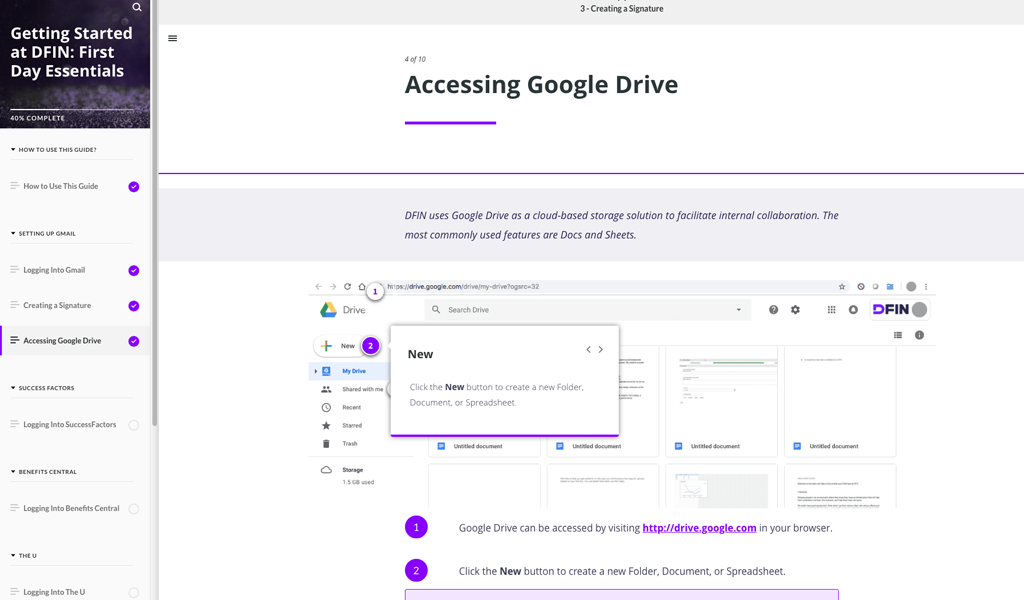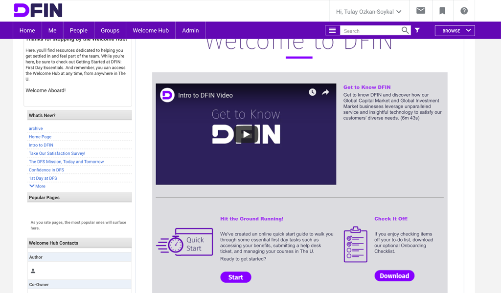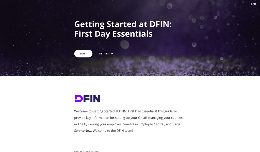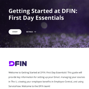 The project's goal is to offer an encouraging first day experience for the new hires at DFIN and a streamlined and consistent on-boarding process at all locations around the world.